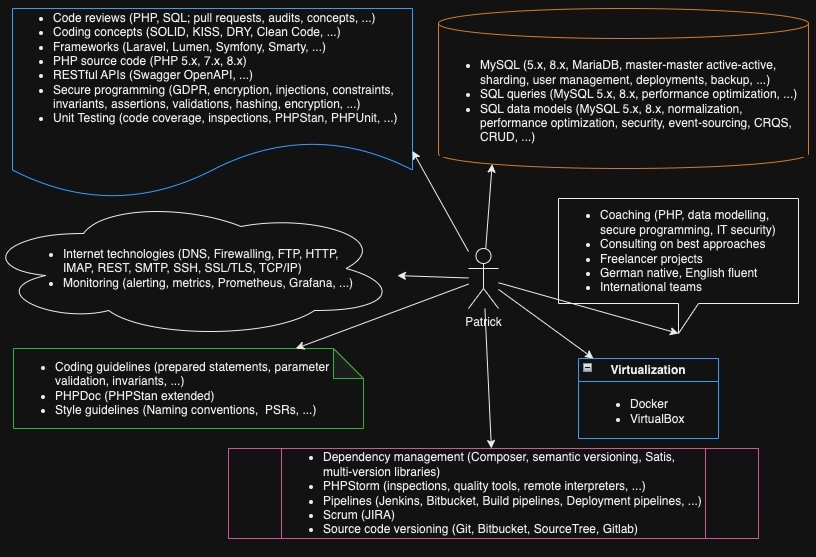 Hello! My name is Patrick Nehls and I am a PHP backend developer (with strong security affinity and a great database background) from the beautiful city Hamburg in Germany. I have been working as a developer on different programming languages and as database administrator on different database systems for more than 28 years. I believe in code quality, great data models and secure programming. My focus is on PHP and MySQL.
